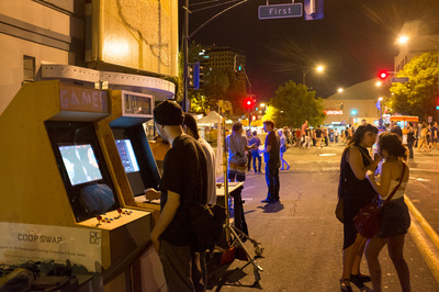 Since then the cabinets have been to Maker Faire, SubZero, Silicon Valley Comic Con, Rockage, Kaleid Gallery and used in numerous student shows to showcase student designed games from the Art & Computer Science Departments and the Game Developers Club at SJSU.