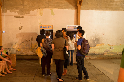 It has been gratifying to see how people respond to the nostalgic interface of a life-sized piece furniture, there is none of the reluctance that one sees when a computer is put into a gallery space. Many people remember the form from the musty arcades of the past and the sturdy construction means that the cabinets have long outlived their initial life expectancy.