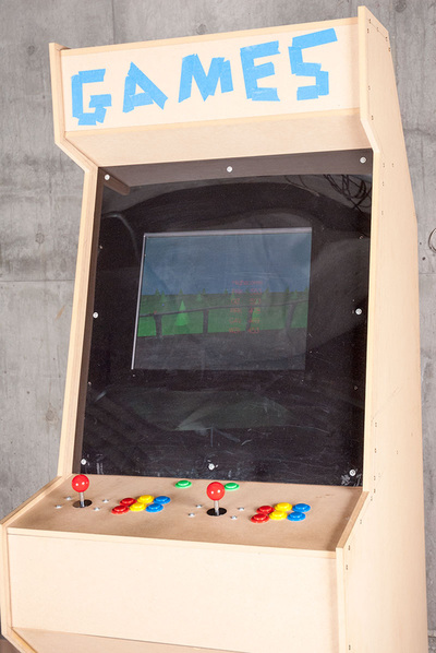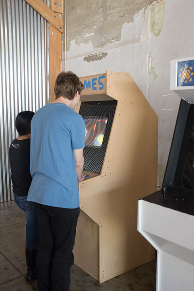 In April of 2012 I build the prototype Arcade Cabinet at TechShop San José. Using modified plans and a CNC router, the first cabinet has a rustic and unfinished aesthetic. Over the summer of 2012 we constructed five more cabinets for the Cooperative Gaming Coop with 2012 Zero1 Biennial: Seeking Silicon Valley.